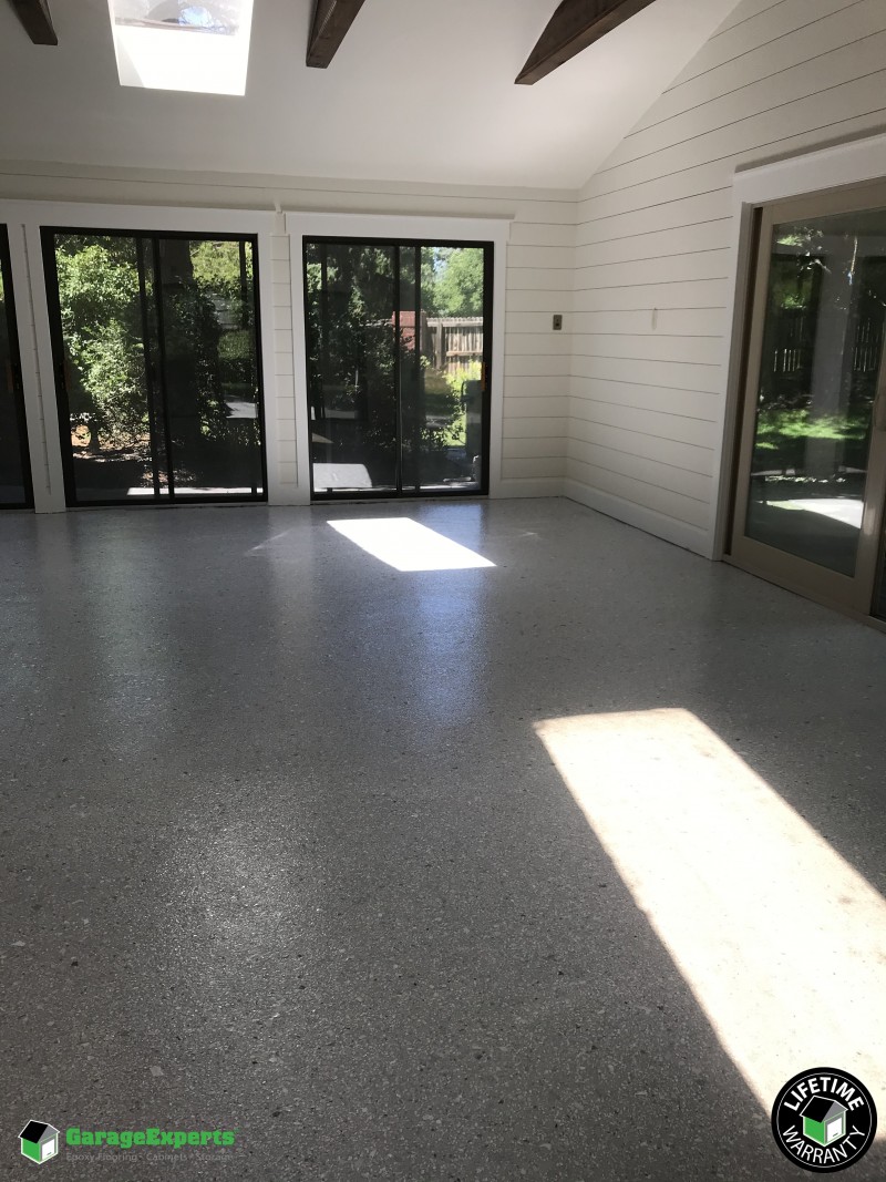 Residential A Beautiful Sunroom Epoxy Flooring In Highlands Ranch Co Garage Experts Of Denver Metro
